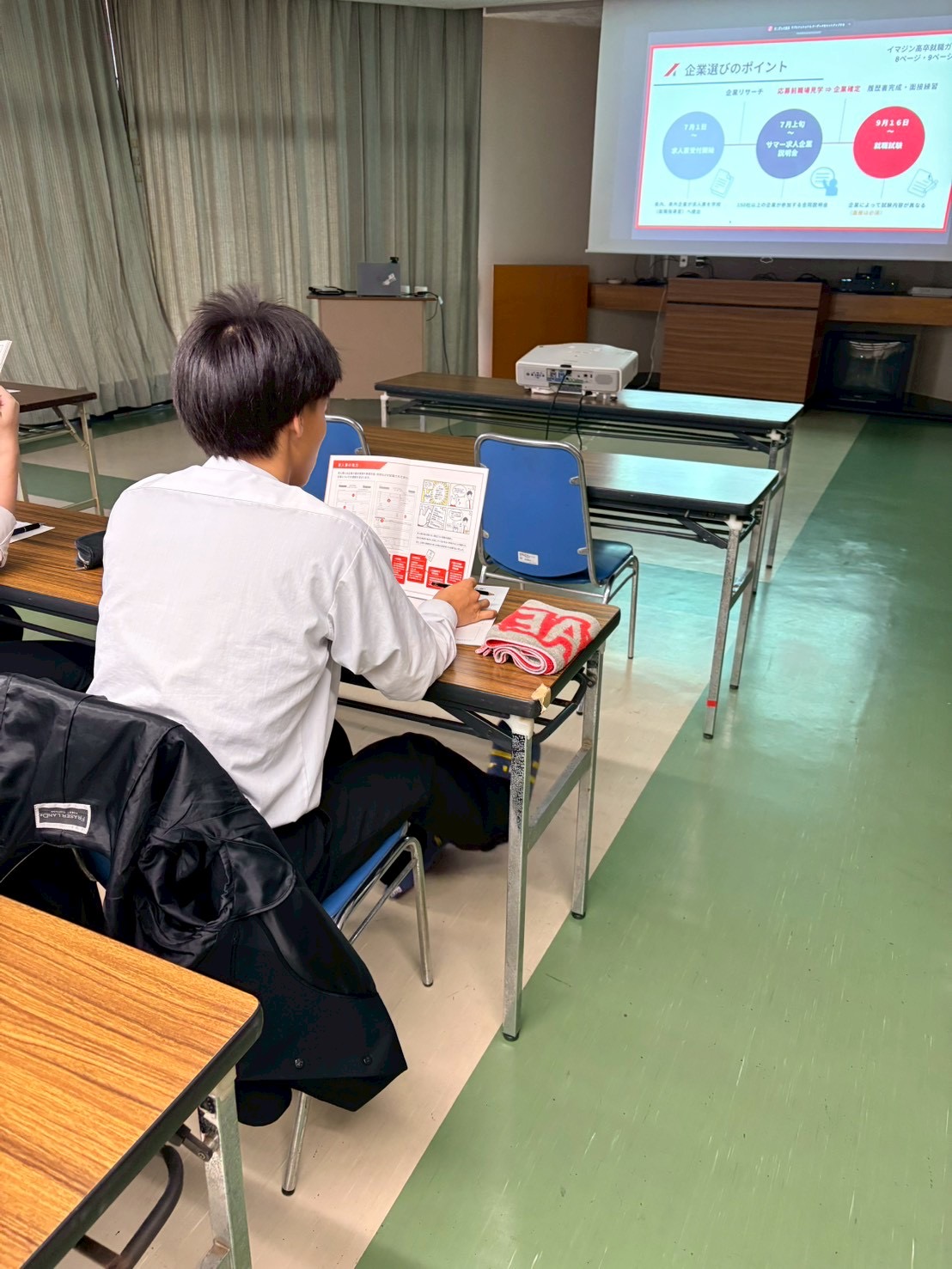 自分を知る、業種を知る、企業を知る、残りの高校生活の時間で自分の将来にしっかり向き合ってほしいとエールを送りました。